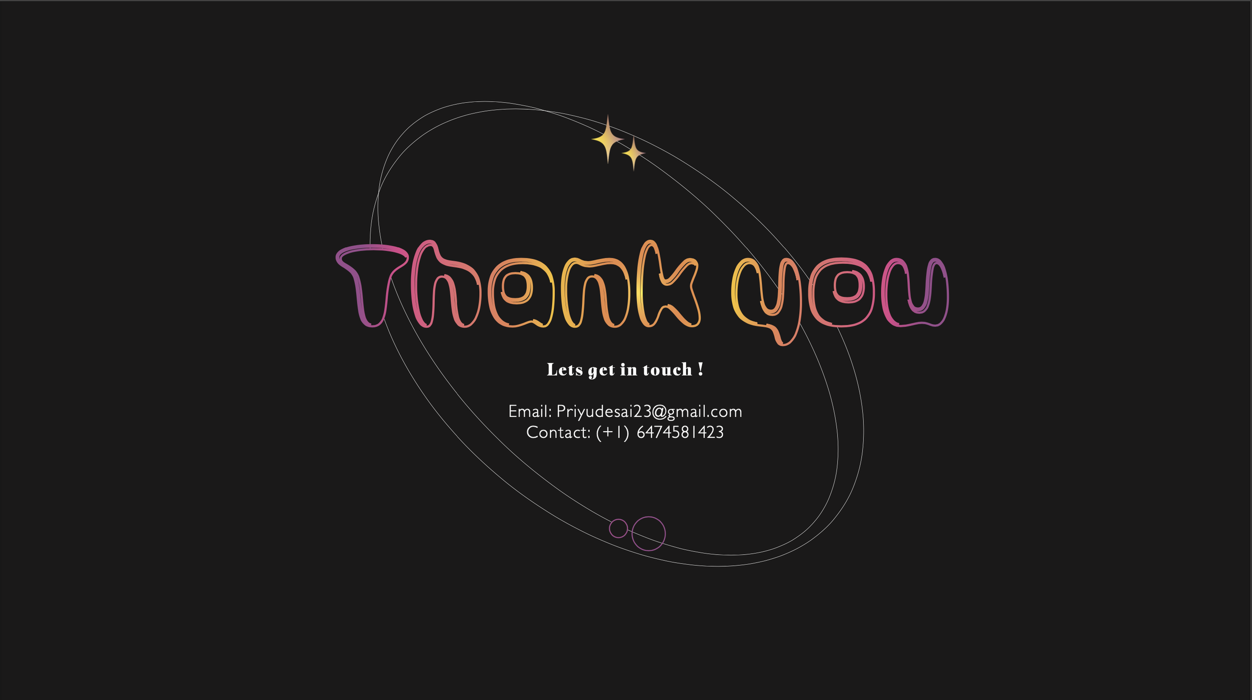 Let’s get in Touch ! If you would like to know more about my work or process please feel free to get in touch. Emailpriyudesai@gmail.com Phone(647) 458-1423 LET'S GET IN TOUCH 〰️ LET'S GET IN TOUCH 〰️ LET'S GET IN TOUCH 〰️